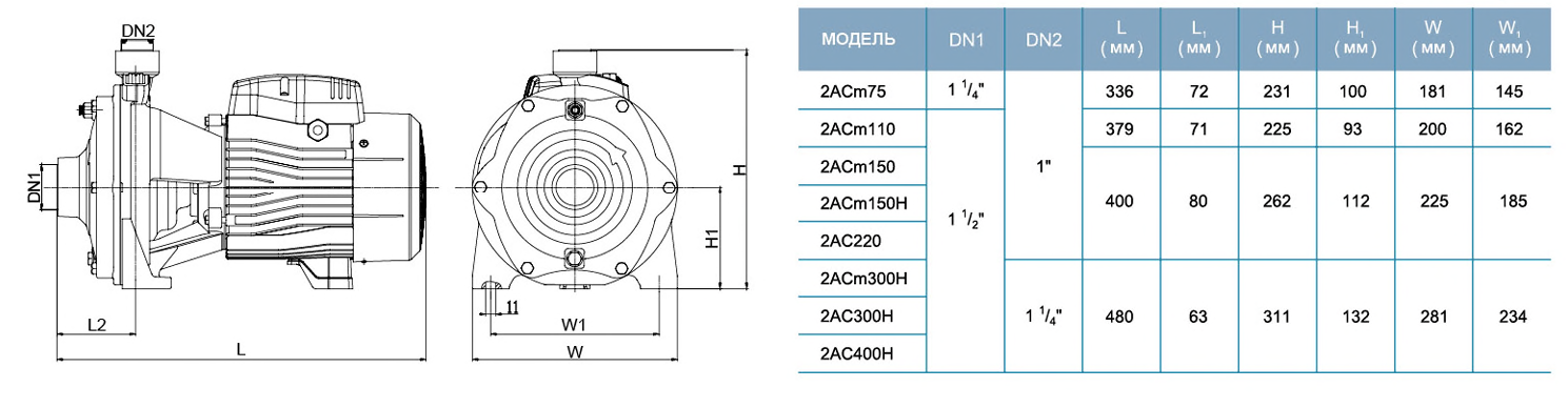 Высокопроизводительный центробежный двухступенчатый насос 2ACm150H предназначен для перекачивания чистой, не содержащей абразивных частиц (песка) воды из колодцев и емкостей.